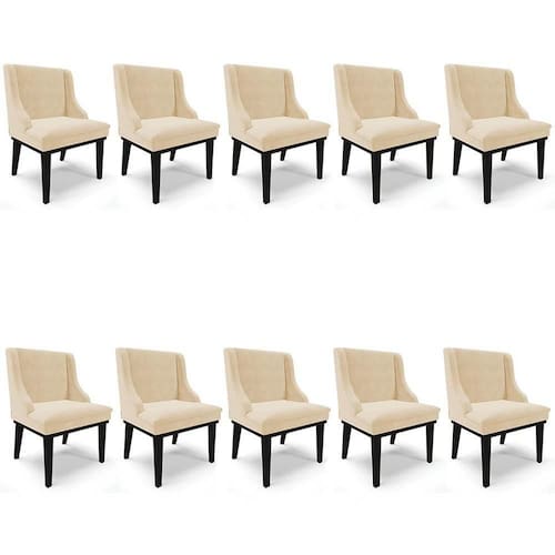 Procurando móveis confortáveis e resistentes? Conheça o Kit 10 Cadeiras Estofadas para Sala de Jantar Base Fixa de Madeira Preto Lia Suede Bege, da Ibiza!