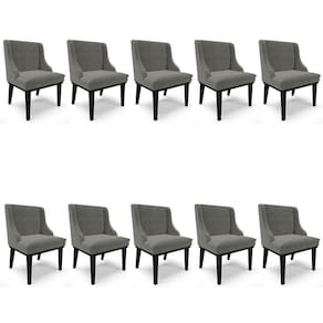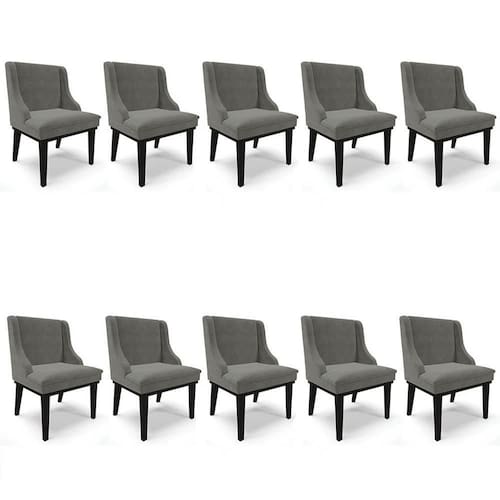 Procurando móveis confortáveis e resistentes? Conheça o Kit 10 Cadeiras Estofadas para Sala de Jantar Base Fixa de Madeira Preto Lia Suede Grafite, da Ibiza!