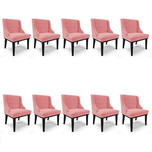 Procurando móveis confortáveis e resistentes? Conheça o Kit 10 Cadeiras Estofadas para Sala de Jantar Base Fixa de Madeira Preto Lia Suede Rosê, da Ibiza!