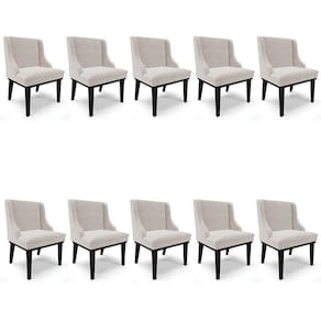 Para quem gosta de compartilhar as refeições com a família e os amigos, é importante se atentar a quantidade de cadeiras para que todos possam se assentar com conforto, por isso, o Kit 10 Cadeiras Estofadas Lia, é ideal para você! A Cadeira Lia vai agregar elegância e sofisticação à sua Sala de Jantar, além de resistentes e lindas o design permite combiná-las com diversos móveis e estilos de decoração. Cada cadeira é produzida com Madeira Eucalipto, ecologicamente correta, a base fixa em madeira suporta até 120 kg, garantindo durabilidade e qualidade. O estofamento é composto por espuma densidade D-23 e revestida em Veludo resistente, versátil, agradável ao toque e macio.