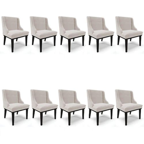 Se você gosta de ter a mesa sempre cheia o Kit 10 Cadeiras Estofadas para Sala de Jantar Base Fixa de Madeira Preto Lia Veludo Cinza, da Ibiza é perfeito para você, confira!