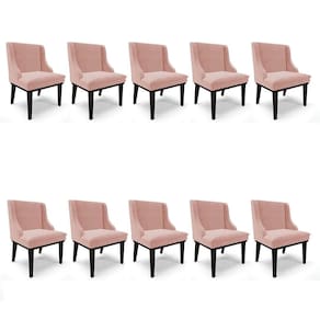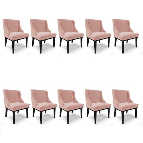 Se você gosta de ter a mesa sempre cheia o Kit 10 Cadeiras Estofadas para Sala de Jantar Base Fixa de Madeira Preto Lia Veludo Rosê, da Ibiza é perfeito para você, confira!