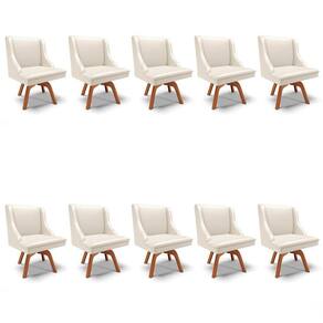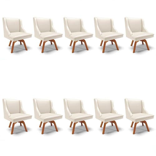 O Kit 10 Cadeiras Estofadas para Sala de Jantar Base Giratória de Madeira Lia Sintético Bege, da Ibiza é perfeito para acomodar a família toda, confira!
