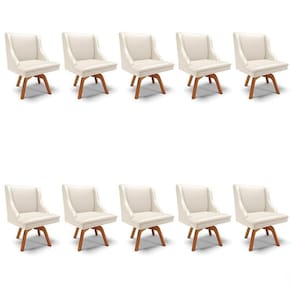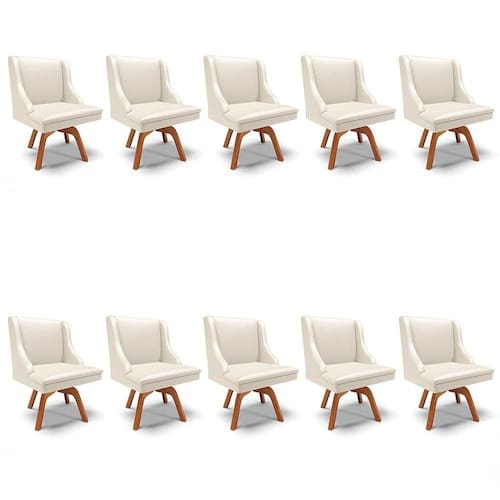 O Kit 10 Cadeiras Estofadas para Sala de Jantar Base Giratória de Madeira Lia Sintético Bege, da Ibiza é perfeito para acomodar a família toda, confira!