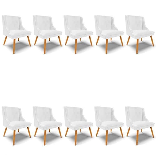 Deixe a sua casa mais bonita e sofisticada! Confira o Kit 10 Cadeiras Estofadas para Sala de Jantar Pés Palito Lia Sintético Premium Branco, da Ibiza e transforme a decoração do ambiente!