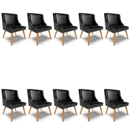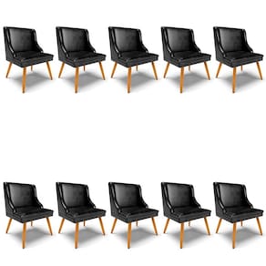 Deixe a sua casa mais bonita e sofisticada! Confira o Kit 10 Cadeiras Estofadas para Sala de Jantar Pés Palito Lia Sintético Premium Preto, da Ibiza e transforme a decoração do ambiente!