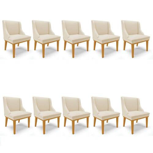 Com o Kit 10 Cadeiras Estofadas Sala de Jantar Base Fixa de Madeira Castanho Lia Sintético Bege, da Ibiza, você tem beleza e conforto, sem abrir mão da qualidade! Confira os detalhes!