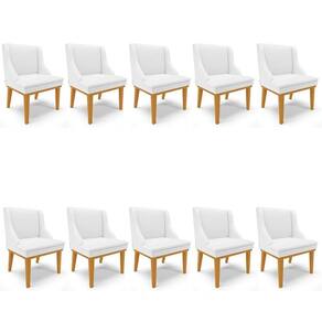Com o Kit 10 Cadeiras Estofadas Sala de Jantar Base Fixa de Madeira Castanho Lia Sintético Branco, da Ibiza, você tem beleza e conforto, sem abrir mão da qualidade! Confira os detalhes!