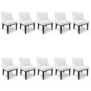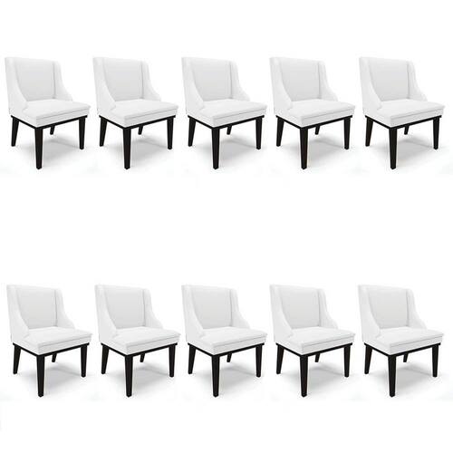 Beleza e elegância, são os atributos do Kit 10 Cadeiras Estofadas Sala de Jantar Base Fixa de Madeira Preto Lia Sintético Branco, da Ibiza, vem conhecer os detalhes!