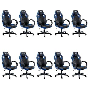 Kit 10 Cadeiras Gamer Giratória Regulavel Quest Preto/Azul