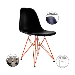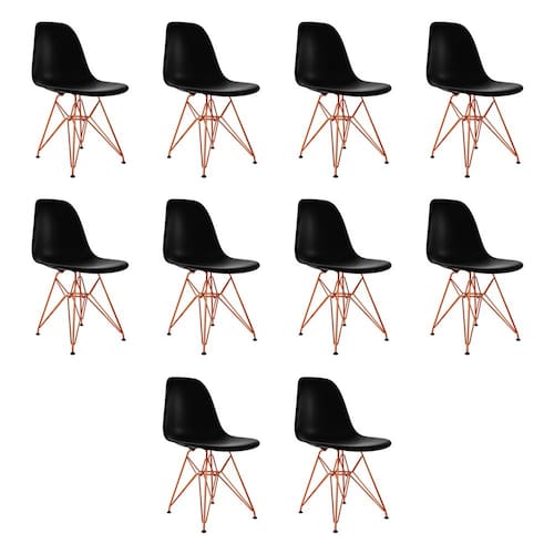 Kit 10 Cadeiras Jantar Assento Preto Eiffel Eames Base Ferro Cobre - Laranja