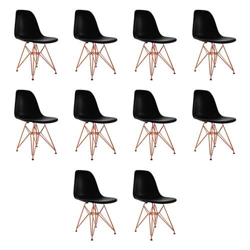 Kit 10 Cadeiras Jantar Assento Preto Eiffel Eames Base Ferro Cobre - Laranja