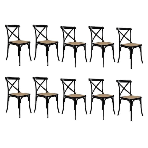 Altura: 90cmLargura: 44cmProfundidade: 44cmPeso: 5,1kg cadaKit 10 Cadeiras Jantar Cross Katrina Preta Assento Corano Bege AÃo
