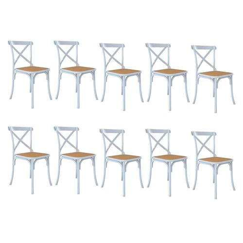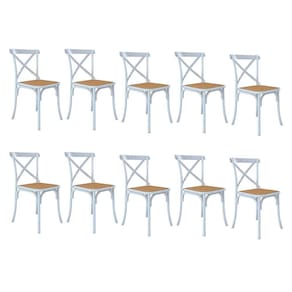 Altura: 90cm Largura: 44cm Profundidade: 44cm Peso: 5,1kgKit 10 Cadeiras Jantar Cross Katrina X Branca Assento Bege AÃo