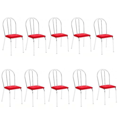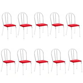 Kit 10 Cadeiras Lisboa Cromada Para Cozinha Ou área Gourmet-assento Sintético Vermelha