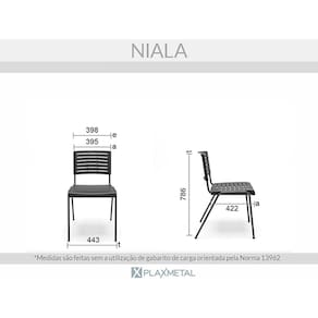A Niala é uma linha versátil, desenvolvida para se adaptar aos mais diversos ambientes como salas de aula, auditórios de eventos e espaços de lazer. São cadeiras leves e empilháveis, perfeitas para a otimização de espaços dinâmicos e em constante movimento. Altura do assento até o chão: 436 Ambiente Principal: Escritório Assento Estofado: Não Cada Assento Suporta Até (kg): 110 Complexidade da Montagem: Baixa: pode ser montado por uma pessoa sozinha Cor: Verde Cor do Produto: Verde Empilhável: Sim Encosto Reclinável: Não Escala de Brilho: Semi-Brilho Informações Complementares: Bases / Estruturas: Metal Pintura Branca ou Metal Pintura Preta, Encosto e assento: Termoplástico Itens Inclusos: 1 Cadeira,Manual de Montagem e Parafusos. Linha ou Coleção: Niala Manual de Especificação Técnica: https://cdn2.madeiramadeira.com.br/atributo/plaxmetal/1295795-cadeira-niala.pdf Manual de Montagem e Instalação: https://cdn2.madeiramadeira.com.br/atributo/plaxmetal/1302654-niala-manual-completo-digital.pdf Material da Base: Tubo Cromado Material do Assento: Polipropileno Material do Braço: Polipropileno Necessita Montagem: Sim Origem do Produto: Nacional Peso: 40,5 kg Possui Apoio para Braços: Não Possui LED: Não Possui Rodízio: Não Quantidade de Itens: 10 Quantidade de Lugares: 01 Recomendações de Uso, Manutenção e Limpeza: Para garantir a conservação e prolongar a vida útil do produto, sugere-se adotar os seguintes procedimentos: - fazer limpeza do produto com frequência com produtos adequados (esponjas umedecidas com sabão neutro removendo excesso com pano suave, não utilizar produtos químicos derivados do petróleo). - nunca utilizar solventes ou detergentes abrasivos podem danificar o produto ou riscar superfícies. Nunca utilizar esponjas de limpeza ásperas ou palhas de aço. Nunca mergulhar o produto em água ou lavar sob água corrente. Sistema de Montagem: Parafuso Suporta Até (kg): 110 kg