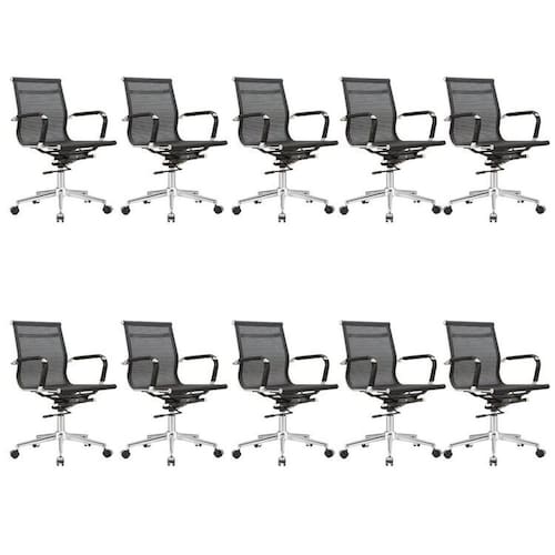 A cadeira Sydney Diretor é toda em tela com aço cromado. A tela garante resistência e conforto para quem estiver usando, além de também possuir seus braços revestidos, para que a pele não entre em contato com o metal direto. Ela possui o sistema relax para que seja melhor para seus usuários, travando na vertical, ou balançando de acordo com o movimento do corpo. Altura do Conjunto: 95 cm Ambiente: null Ambiente Principal: Escritório Cor: Preto Informação Complementar: 10x Cadeira Para Escritório Diretor Giratória Aço Cromado Sidney Preto Largura: 56 cm Altura: 95 cm Peso: 10,15 kg Profundidade: 60 cm Necessita Montagem: Sim