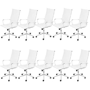 Kit 10 Cadeiras para Escritório Presidente Esteirinha com Relax Sintético 3301 Or Design A Cadeira OR-3301 tem uma estrutura metalizada cromada com rodízios em PU que não danificam o piso, sistema relax com travamento, assento e detalhes no encosto dos braços em PU. Uma excelente escolha, agregando estilo e conforto para seu escritório. Cadeira resistente, suporta até 120 kg. Suporta Até (kg): 120 Altura do Conjunto: 106 cm Ambiente: null Ambiente Principal: Escritório Cor: Branco Informação Complementar: 2x Conjunto 4 Cadeiras de Escritórios com Rodízios Esteirinha Alta Sintético BrancoLargura: 61Altura: 106Peso: 12.19Profundidade: 46.5Necessita Montagem: Sim1x Kit 2 Cadeiras para Escritório Presidente Esteirinha Alta 3301 Or Design BrancoLargura: 61Altura: 106Peso: 12.19Profundidade: 46.5Necessita Montagem: Sim Possui Rodízio: Sim
