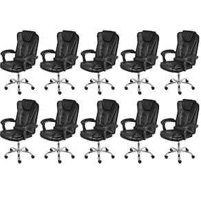 A cadeira Jacarta possui revestimento em PU, sistema relax com travamento, apoio de lombar e braços acolchoados. Base cromada giratória com rodízios PU que não danificam o piso. Cadeira imponente e muito confortável, em função do seu encosto alto. Altura do Conjunto: 107 cm Ambiente: null Ambiente Principal: Escritório Cor: Preto Informação Complementar: 10x Cadeira para Escritório Presidente Estofada Jacarta Preto Largura: 52 cm Altura: 107 cm Peso: 9 kg Profundidade: 78 cm Necessita Montagem: Sim
