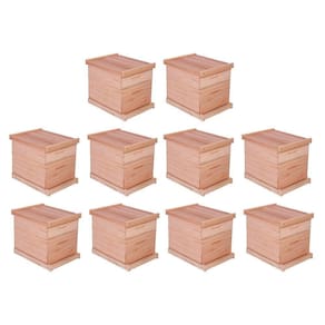 Acompanha o produto: - CADA CAIXA1 Assoalho 1 Ninho c/ 10 quadros - COM arame/ilhós 1 Melgueiras c/ 10 quadros cada - COM arame/ilhós 1 Tampo