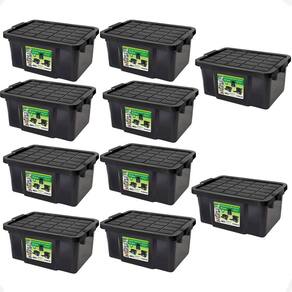 Kit 10 caixas organizadora multiuso preta 25l empilhável