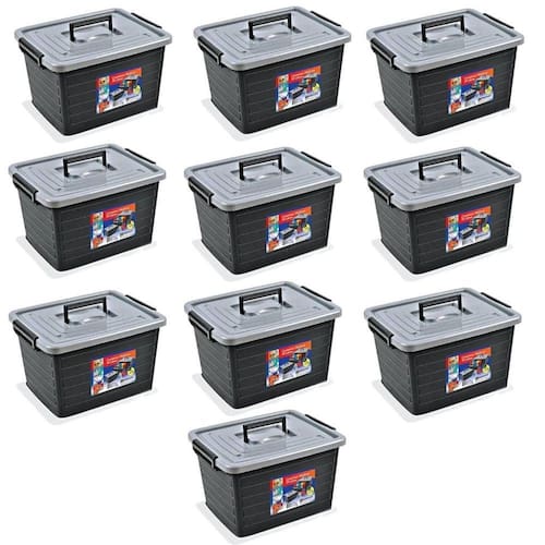 Kit 10 Caixas Organizadoras 35 Litros Preta 25166 Arqplast