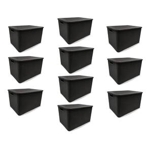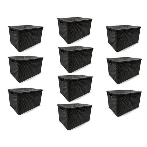 Kit 10 Caixas Organizadoras Rattan PRETA 15 Litros Arqplast Kit 10 Caixas Organizadoras Rattan PRETA 15 Litros ArqplastAixa organizadora em plástico com tampa, que facilita a organização De guarda roupas e armários, por ser uma peça charmosa expor em Ambientes abertos dá um toque especial a decoração. Combina com vários ambientes, como cozinha, sala, banheiro e quarto. Material - Polipropileno DescriçãoDimensões:345 X 255 X 700mm (Corpo) 365 X 275 X 140mm (Tampa) (comprimento x largura x altura) medida do produtoDimensões: 345 X 260 X 180mm (comprimento x largura x altura)
