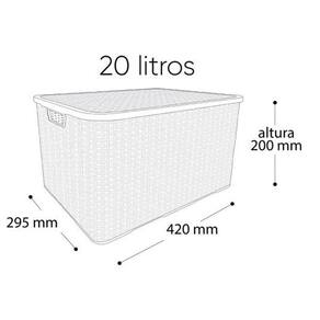 Kit 10 Caixas Organizadoras Rattan PRETA 20 Litros Arqplast Kit 10 Caixas Organizadoras Rattan Preta 20 Litros Arqplast Caixa organizadora em plástico com tampa, que facilita a organização De guarda roupas e armários, por ser uma peça charmosa expor em Ambientes abertos dá um toque especial a decoração. Combina com vários ambientes, como cozinha, sala, banheiro e quarto. Material - Polipropileno DescriçãoDimensões:415 X 290 X 730mm Corpo 435 X 320 X 146mm Tampa comprimento x largura x altura medida do produtoDimensões: 420 X 295 X 200mm comprimento x largura x altura