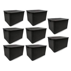 Kit 10 Caixas Organizadoras Rattan PRETA 20 Litros Arqplast Kit 10 Caixas Organizadoras Rattan Preta 20 Litros Arqplast Caixa organizadora em plástico com tampa, que facilita a organização De guarda roupas e armários, por ser uma peça charmosa expor em Ambientes abertos dá um toque especial a decoração. Combina com vários ambientes, como cozinha, sala, banheiro e quarto. Material - Polipropileno DescriçãoDimensões:415 X 290 X 730mm Corpo 435 X 320 X 146mm Tampa comprimento x largura x altura medida do produtoDimensões: 420 X 295 X 200mm comprimento x largura x altura