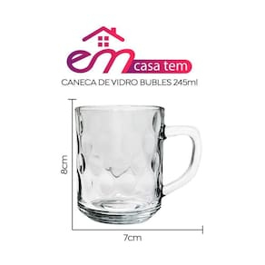 Kit 10 Canecas De Vidro Bubles Relevo Em Casa Tem 245ml Kit 10 Canecas de Vidro Bubles Relevo Em Casa Tem 245ml Caneca de Vidro Bubles Relevo Em Casa Tem 245ml Código: 121546 Referência: 15395 Marca: EmCasaTem Material: Vidro Cor: Transparente Capacidade: 245ml Dimensões do produto (AxLxC): 8,00 x 7,00 x 7,00cm Quantidade: 10 unidades Caneca de vidro super resistente, ideal para café expresso, cappuccino, chás etc. Cada caneca tem capacidade para 245 ml. Possui alça reforçada e um lindo design, com textura interior no formato de bolhas. É uma peça super estilosa, ideal para ser usada no dia-dia.