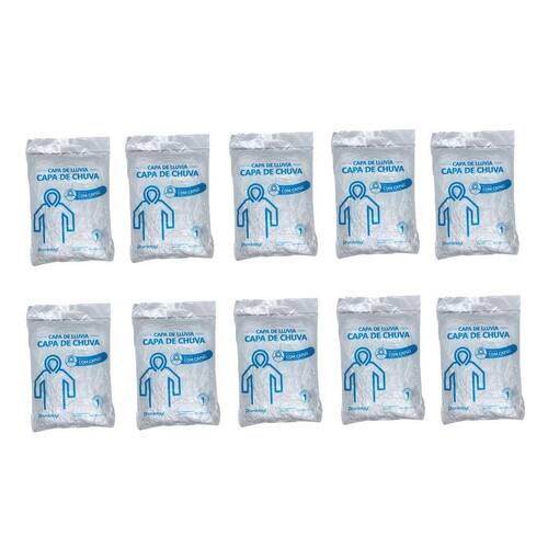 Kit 10 capa de chuva transparente c/capuz s/elástico no punho prevemax