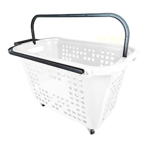 equipada com rodízios resistentes, a cesta desliza suavemente sobre diferentes superfícies, tornando o transporte das compras mais conveniente do que nunca. a roda possui um movimento completo de 360°, permitindo uma manobrabilidade superior em corredores estreitos e áreas congestionadas.