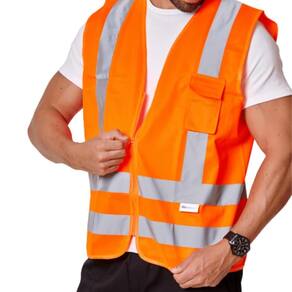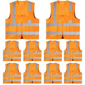 Colete de segurança confeccionado em tecido 100% poliéster fluorescente, com faixas refletivas prata, fechamento em zíper. Colete de Sinalização de alta visibilidade, sinalização de alta visibilidade.