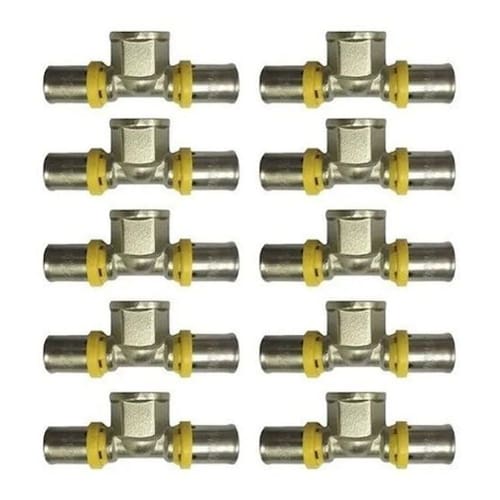 Kit 10 conector te pex multicamadas gás 16 x 1/2 i x 16mm kit com 10 conexão de prensar iso 17484 te misto prensa e rosca multicamada 16 x 1/2 i x 16mm. Aplicação: para prensar em tubos multicamada para gás natural ou gás glp , tubo amarelo e branco com proteção uv 20 mm. Marca: sigas