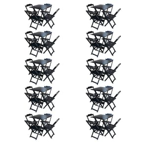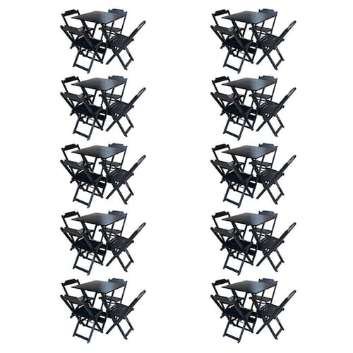 Kit 10 Conjuntos de Mesa com 4 Cadeiras de Madeira Dobravel 70x70 Qualidade Móveis Guara - Preto - Preto