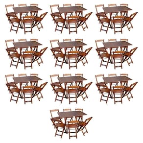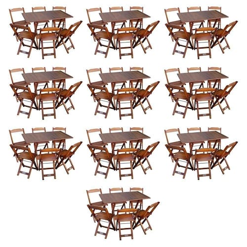 Kit 10 Conjuntos De Mesa Dobráveis De Madeira 70x110cm Com 6 Cadeiras Imbuia