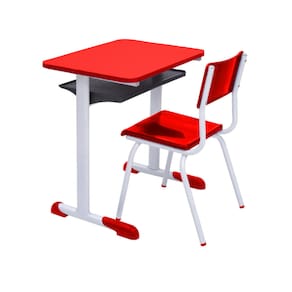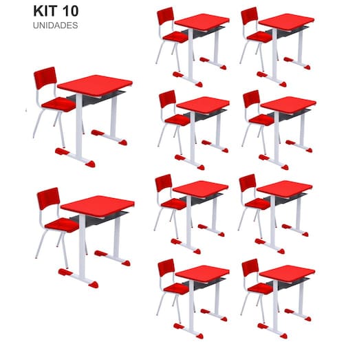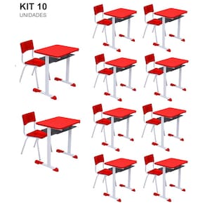 Kit 10 Conjuntos Escolar Individual Juvenil/Adulto com porta Livros cor Vermelho