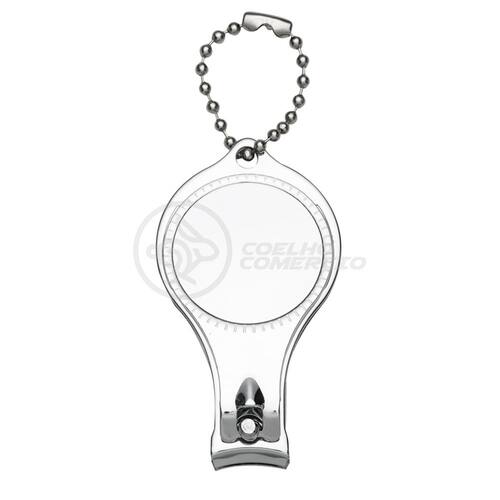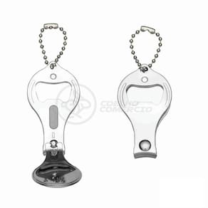 Cortador de unhas chaveiro de metal 3 em 1: abridor, cortador e lixa. Parte central circular ideal para gravações, detalhe de traços no contorno circular. Lado frontal com detalhes em relevo nas laterais e pequeno círculo acima do abridor. Para utilizar o cortador basta rotacionar a peça circular e levantá-la. Acompanha correntinha.Especificações: - Tamanho do item: 3,2 x 1 x 5,9cm; - Peso do item: 27g.Conteúdo da Embalagem:- 10 x Cortador de unhas. Marca: Draik