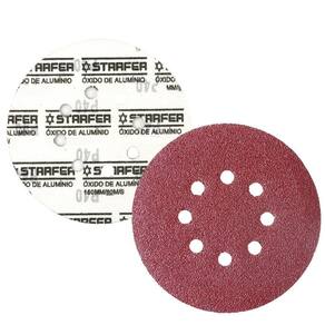 CARACTERÍSTICAS TÉCNICAS: Material: Resina, óxido de alumínio, papel e pluma Medidas: 115mm Quantidade de furos: 8 Limite máxima: 12.220rpm - 80m/s Grão: 40 Quantidade: 10 unidades Marca: Starfer Ref.: 4000005