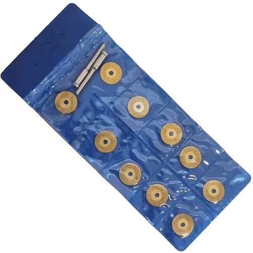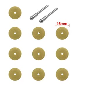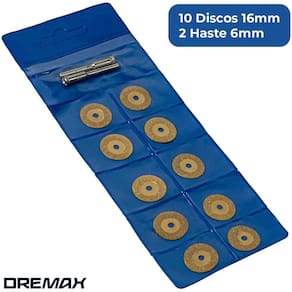 Jogo com 10 Discos de Corte 16mm Diamantado Titânio Dourado para Micro Retíficas Dremax - Marca: Dremax - Referência: JDD12-16 - Kit exclusivo com 10 discos de corte 16mm e 2 Hastes 3mm - Diâmetros dos discos: 16mm - Espessura dos discos: 0,5mm - Material: Diamantado com revestimento em titânio - Para ser acoplado suporte de discos acompanha 2 suportes com haste de 3mm - Diâmetro do furo: 2,4mm - Indicado para corte de porcelanato, pedras preciosas, vidro, cerâmica, rocha, mármore, telhas, alumínio e cobre - Recomenda-se corte com água para aumentar a vida útil dos discos - Revestido com partículas finas de diamante sintético em ambos os lados, bem como em torno da borda. - Super fino, para uso em lugares apertados, fazendo ranhuras e fendas e corte nivelado. - Velocidade máxima: 20,000 rpm - : 90 dias contra defeitos de fabricação A DREMAX é a primeira e única marca brasileira dedicada exclusivamente às micro retíficas, acessórios e acoplamentos para esta indispensável ferramenta. Seja para trabalhos de precisão, artesanato, modelagem ou reparos, a DREMAX tem o produto certo para você. Marca: Não Informado Ean: 7734625972710