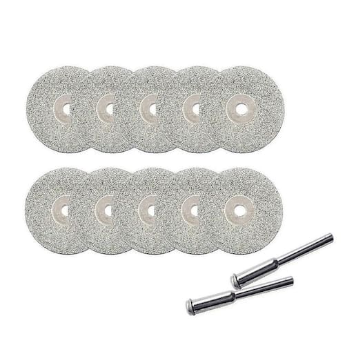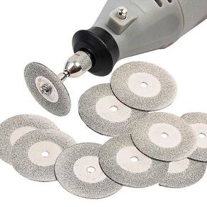 Os discos diamantados possuem diâmetro de 22mm e são acompanhados por 2 hastes de 3mm. Sua velocidade máxima é de 20.000 rpm, garantindo cortes rápidos e eficientes. Feitos com lâmina de aço carboneto revestido com diamante, esses discos são ideais para cortar materiais como pedras preciosas, vidro exceto temperado , cerâmica, porcelana, pisos, azulejo, coral, marinho, quartzo, cristais, mármore, granito, resina, plástico e acrílico.