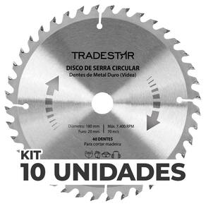 Kit com 10 unidades de Disco Serra Circular Madeira 40 D 180x20mm para uso Makita