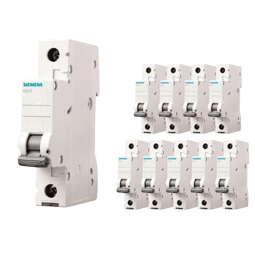 KIT 10 Disjuntor Unipolar 1P Curva B 32A Siemens Descrição do Produto Kit com 10 Disjuntores Unipolares 1P Curva B 32A Siemens Se você busca segurança e eficiência para suas instalações elétricas, o Kit com 10 Disjuntores Unipolares 1P Curva B 32A da Siemens é a escolha perfeita. Projetados para proteger circuitos elétricos contra sobrecargas e curtos-circuitos, esses disjuntores asseguram a integridade do seu sistema elétrico, proporcionando tranquilidade e confiabilidade para aplicações residenciais e comerciais leves. Benefícios e Características Principais: Proteção Eficaz: Protege contra sobrecargas e curtos-circuitos, garantindo a segurança do seu sistema elétrico. Curva B: Ideal para aplicações residenciais e comerciais leves, oferecendo uma resposta rápida e eficiente. Design Compacto: Facilita a instalação em quadros de distribuição, economizando espaço. Qualidade Siemens: Fabricado por uma das marcas líderes em soluções elétricas, assegurando durabilidade e confiança. Especificações Técnicas: Corrente Nominal: 32A Tensão Máxima de Isolamento: 415V Curva de Disparo: B Tecnologia da Unidade de Disparo: Termomagnética Capacidade de Interrupção: 6kA Dimensões: 18mm x 80mm x 70mm Material: Termoplástico de alta resistência Itens Inclusos: 10 Disjuntores Unipolares 1P Curva B 32A Siemens Manual de Instalação : 3 meses Adquira agora o Kit com 10 Disjuntores Unipolares 1P Curva B 32A Siemens e garanta a segurança e eficiência que suas instalações elétricas merecem