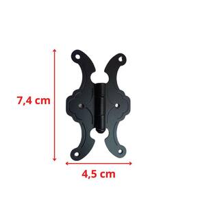 A dobradiça borboleta, estilo mexicana, é uma peça que confere beleza única para móveis diversos. Seu acabamento foi desenvolvido especialmente para móveis provençais, coloniais, de restauração ou realmente antigos.