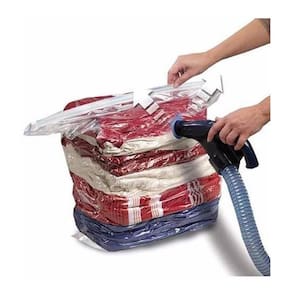Kit 10 Embalagens a Vácuo, 3x Mais Espaço no Seu Guarda Roupa e Mala Com Bomba De SucçãoQuantidade: 10 unidades Tamanho: 60 x 80cm Utiliza com seu aspirador de pó ou com a Bomba de sucção que acompanha esse kit. Produzido em pvc Hermético e reutilizável À prova de umidade Protege de mofo e odores Otimiza o espaço em sua mala ou guarda-roupas em até 3 x mais Modo de usar: 1 Insira na embalagem edredons, travesseiros, cobertores, casacos ou qualquer item que você desejar guardar e proteger. As peças devem ser totalmente secas, limpas e ocupar o espaço da embalagem até a linha pontilhada do zíper de fechamento. 2 Use um pano úmido para limpar o zíper de fechamento e coloque o feixe de plástico para instalá-lo. 3 Abra a válvula e encaixe seu aspirador de pó ou a bomba de sucção que acompanha nesse kitVantagens do produto- Proteger seu casaco, cobertor, roupas, edredons e etc de mofo, poeira e umidade. - Reduz em até 3 vezes o espaço da sua mala e guarda-roupa - Você pode reutilizar várias vezes - Protege suas roupas de odores fortes - Evitar que as roupas se danifiquem ao passar do tempo