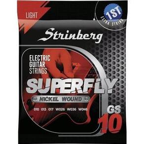 Kit 10 Encordoamento Strinberg Para Guitarra GS10 - 6 CordasO Kit 10 Encordoamentos Strinberg para Guitarra GS10 de 6 cordas é a escolha perfeita para elevar o desempenho da sua guitarra. Com qualidade e durabilidade excepcionais, esses encordoamentos proporcionam um som claro e vibrante, permitindo que você explore todo o potencial do seu instrumento. Seja para tocar acordes encorpados ou solos expressivos, o Kit Encordoamentos Strinberg GS10 garante uma resposta precisa e um tom consistente. Renove o som da sua guitarra e adicione um toque profissional às suas apresentações com esses encordoamentos confiáveis e de alta qualidade.Especificações Técnicas:• Modelo: GS-10• Espessuras: 1º - .010 / 2º - .013 / 3º - .017 / 4º - .026 / 5º - .036 / 6º - .046• Revestimento de bordões: Níquel.Conteúdo da Embalagem:• Kit 10 Encordoamento Strinberg Para Guitarra GS10 - 6 Cordas• Manual e Certificado de GarantiaImportante:• Garantia de 90 Dias.• Valor Kit.