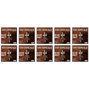 Kit 10 Encordoamento Violão Aço São Gonçalo 010 Descrição: O Encordoamento para Violão de Aço São Gonçalo com calibre .010 é uma opção confiável para músicos que buscam um conjunto de cordas duráveis e com sonoridade equilibrada. Projetado para oferecer uma resposta tonal consistente e uma experiência de tocabilidade confortável, este encordoamento atende às necessidades de violonistas de diferentes estilos musicais. Principais Características: Calibre .010: As cordas com calibre .010 proporcionam uma sensação equilibrada de tocabilidade, sendo adequadas tanto para iniciantes quanto para músicos mais experientes. Material de Alta Qualidade: Fabricadas com materiais de qualidade, as cordas São Gonçalo são conhecidas por sua durabilidade e resistência à corrosão, proporcionando uma vida útil prolongada ao encordoamento. Sonoridade Equilibrada: Este conjunto de cordas oferece uma sonoridade equilibrada, com agudos claros, médios expressivos e graves encorpados. Essa característica tonal torna-o versátil para diversos estilos musicais. Resposta Tonal Consistente: As cordas proporcionam uma resposta tonal consistente, garantindo um desempenho musical confiável em diferentes ambientes e condições. Fácil de Tocar: Com uma sensação confortável sob os dedos, o encordoamento São Gonçalo com calibre .010 é fácil de tocar, tornando-o uma escolha acessível para músicos de todos os níveis. Compatibilidade com Violões de Aço: Projetado especificamente para violões de aço, este encordoamento ressalta as características tonais desse tipo de instrumento. Versatilidade Musical: Adequado para uma ampla variedade de estilos musicais, desde o fingerstyle até o strumming, este encordoamento oferece versatilidade aos músicos. Marca São Gonçalo: Reconhecida por sua tradição na fabricação de cordas musicais, a São Gonçalo é uma marca respeitada no mercado, garantindo qualidade e confiabilidade. O Encordoamento Violão de Aço São Gonçalo .010 é uma escolha sólida para músicos que valorizam um conjunto de cordas confiável, com sonoridade equilibrada e boa durabilidade. Seja para práticas diárias, gravações em estúdio ou apresentações , este encordoamento atende às expectativas dos violonistas exigentes. Sobre nossa loja: Com muito orgulho e paixão pela música, a E Musical tem o prazer de servir desde o ano de 2009. Durante esses anos, nos dedicamos incansavelmente a fornecer uma ampla gama de instrumentos musicais, equipamentos de áudio, acessórios e serviços de qualidade excepcional para músicos de todos os níveis e estilos. Lojaemusical Jacareí SP Marca: Não Informado