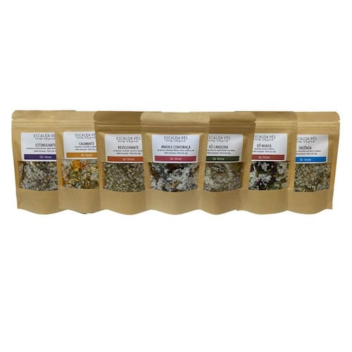 Kit 10 escalda pés revigorante de 50g - lembrancinha, festa Kit 10 escalda pés ilê wurá - revigorante Natural, artesanal, sem corantes e fitoterápico Ideal para presentear, para lembrancinhas de eventos, casamentos e muito mais. Revigorante - sal grosso, alecrim, camomila e hortelã Cada sachê contém 50 g de sais com ervas e serve para 2 a 3 imersões. Embalagem - saco stand up pouch Escalda pés relaxante feito artesanalmente com ervas naturais, ideal para aqueles dias cansativos e estressantes. Benefícios: alivia o , melhora a circulação, reduz inchaços e revigora as energias Modo de usar: em uma bacia grande, coloque 1,5 litro de água morna ou quente ou o suficiente para cobrir os pés e 1 colher bem cheia do escalda pés. Deixe seus pés relaxarem por 10 a 20 minutos. O modo de fazer vai no verso ======== Em caso de dúvidas, estamos à disposição A ilê wurá agradece sua visita e sua compra Marca: Não Informado