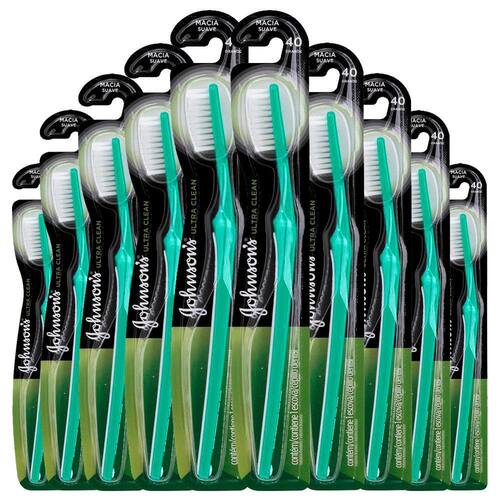 JOHNSONS Ultra Clean é uma escova de dentes de qualidade a um preço acessível. Seu cabo angulado possui maior alcance e suas cerdas têm duas funções: as internas limpam os dentes, enquanto as externas alcançam e limpam suavemente a área entre a gengiva e os dentes.