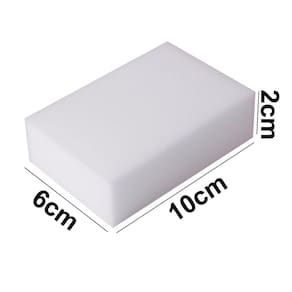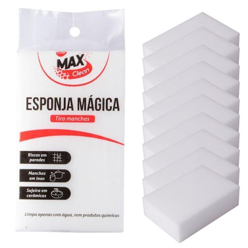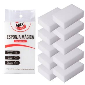 A esponja mágica é indicada para remoção de manchas e limpeza leve. Pode ser utilizada em paredes, rodapés, plástico, madeira, fórmica, inox, vinil, couro, vidros, rejuntes e azulejos.Remove riscos de giz, marcas de mãos, manchas de copos sobre móveis, sujeiras de tênis, limpa a superfície externa de utensílios de inox, bolor, remove musgos de vidros, etc.A esponja pode ser cortada para melhor aplicação.Cuidados: - Umedeça por completo a esponja e esprema para retirar o excesso de água. Não torça a esponja; - Não utilize produtos químicos; - Não use a esponja seca; - Cuidado ao limpar plástico brilhante, faça antes o teste em um area escondida do objeto; - A esponja diminui conforme o uso, sendo o processo acelerado quando utilizada maior pressão ou na limpeza de superfícies não lisas; - Não utilize me superfícies que entrarão em contato com alimentos (parte interna de panelas, talheres, chapas e utensílios domésticos); - Mantenha longe do calor e das crianças.Material: MelaminaDimensões de cada esponja:10cm de largura x 6cm de profundidade x 2cm de altura.Acompanha: 10 esponjas em embalagem individual.LOJA UNIVERSAL VENDAS